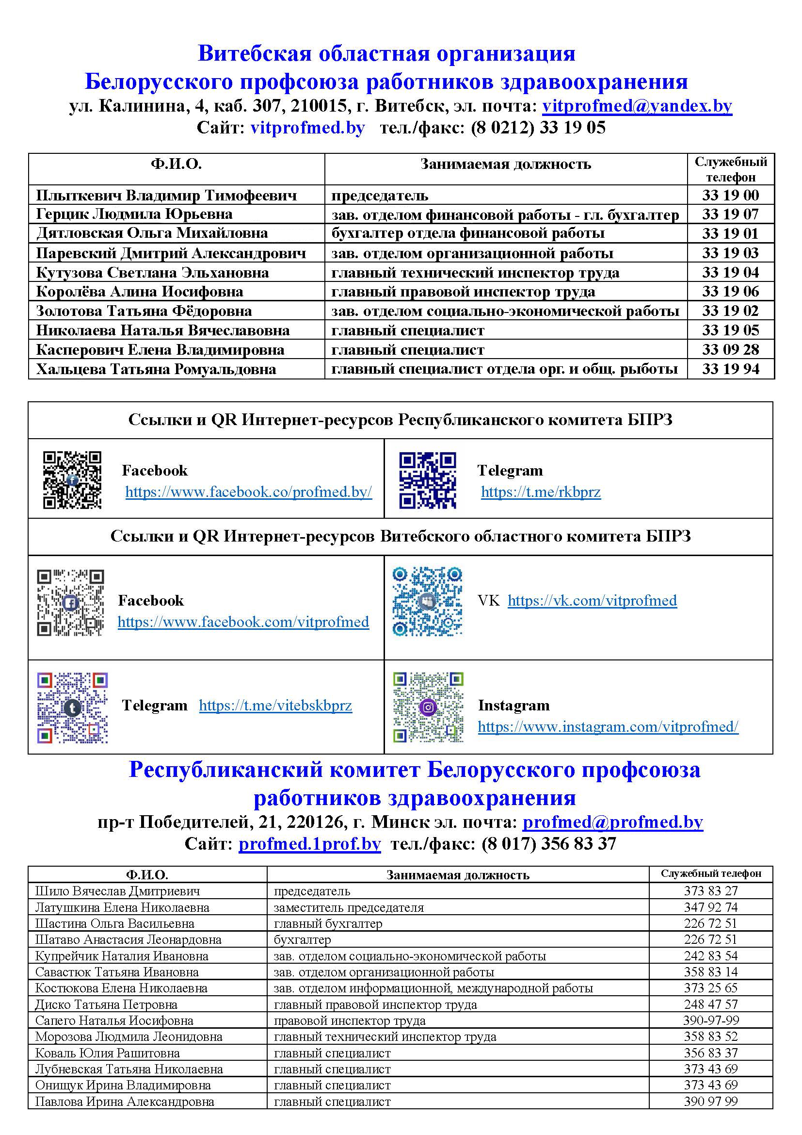 Ответственная за ведение информационной работы – Яско Алина Николаевна (главная медицинская сестра).